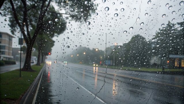 Street with empty billboard on rainy day