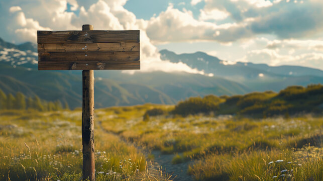 empty signpost in the mountains, mockup
