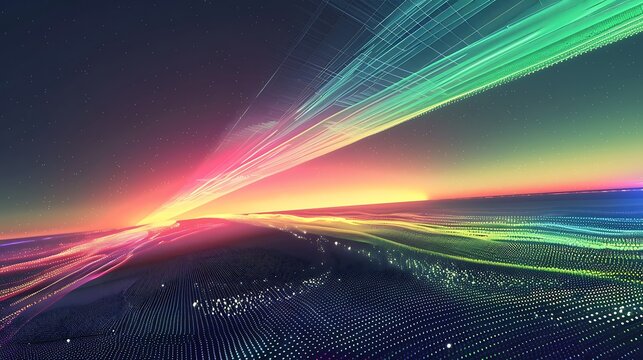 A pixelated aurora borealis stretching across a binary horizon, its colors encoding hidden algorithms