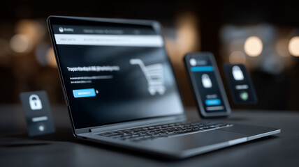 Advanced financial data protection design featuring holographic padlocks, encrypted transaction symbols, and secure online payment visuals on sleek modern devices,cybersecurity, fintech, encryption,