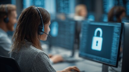 Medium shot of an instant messaging security system in use encrypting conversations to maintain privacy and prevent data leaks in a corporate environment.