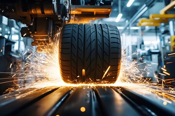 Soldier navigating tire obstacle during outdoor military fitness training, endurance drill
