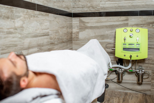 The doctor performs a rectal lavage. A nurse does an enema for the patient. Hygienic procedure. Medical concept