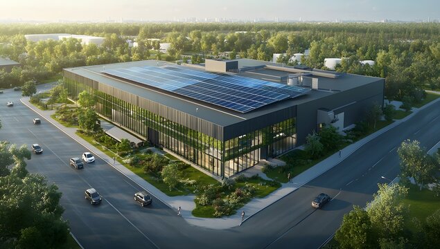 Modern data center with green energy integration and status visualization