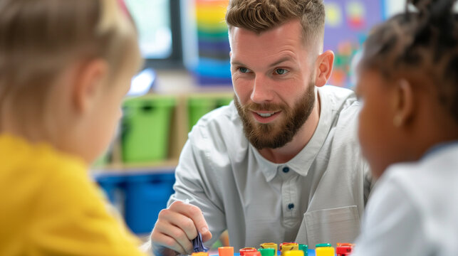 Inspirational teacher engaging students in vibrant learning environment