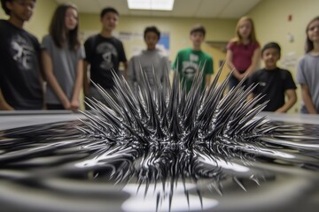 Students engage in a hands-on science experiment with ferrofluid in a classroom setting
