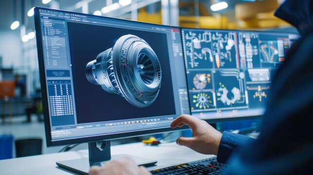 Advanced 3D Turbine Engine Concept With Digital Twin Visualization. Components Integrate With Projections. Sustainable Technology and Design. Technical Concept High Tech Clean Energy Engineering.
