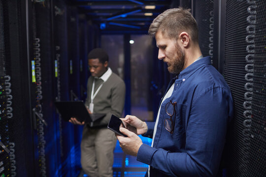 Engineer Analyzing Server In Secure Data Center Environment Images