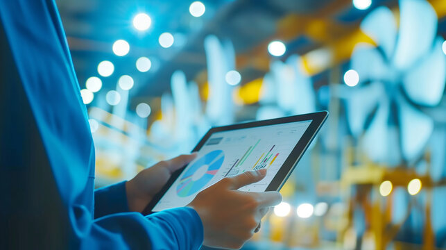 Engineer Analyzing Wind Turbine Data For Efficiency And Performance Images