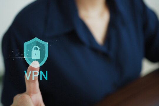 Woman touching VPN symbol. Internet privacy encryption concept. VPN server network security. Cyber ​​security.