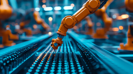 Industrial robotics arm handling precise manufacturing processes in an automated factory setting