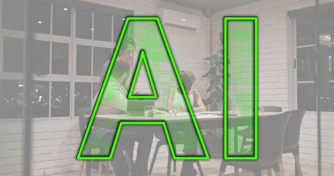 Innovative office with ai and technology concepts overlay