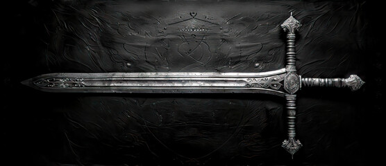 Decorative sword blade weapon, sharp metal engraved ornate design, intricate pattern in silver, medieval craftsmanship