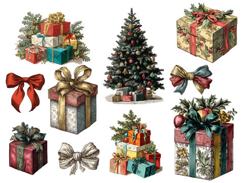 Engraved red ribbon bow on cream background for elegant gift wrap, holiday celebration