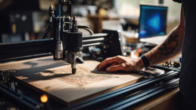 Expert Engraver Set-Up Operator at Work, Mastering the Art of Machine-Operated Design Transfers.