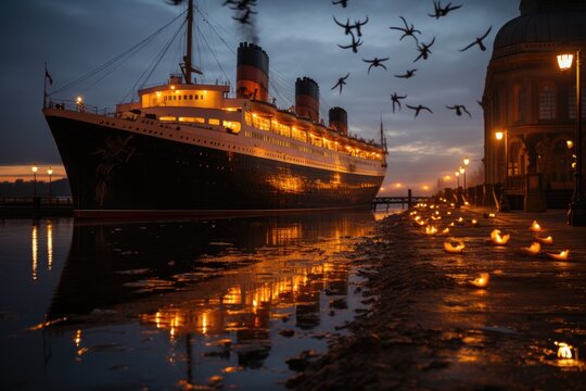 Historical ship in calm waters, floating museum enriched by history., generative IA
