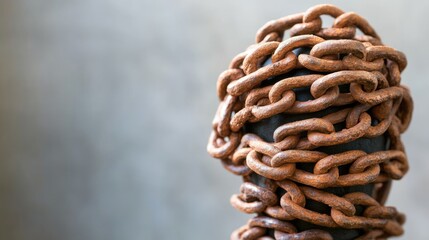 Rusted chain wraps around rusty iron beam