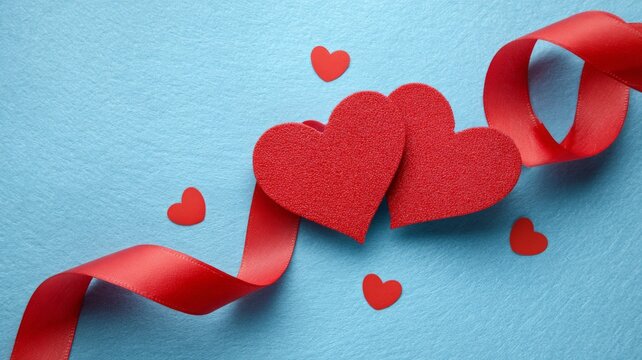 Two red hearts resting on an envelope, symbolizing love and romance in a serene, blue setting.