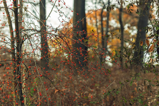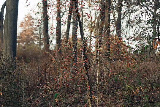 red berries on a tree in a forest in the winter
