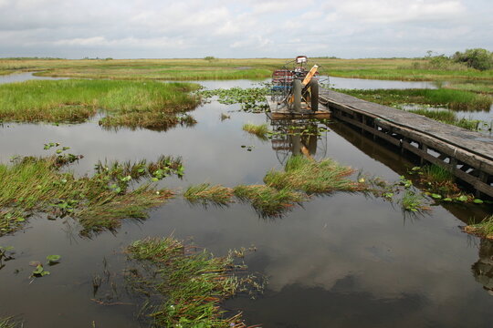 Everglades Florida Boardwalk and Dock for Air Boats and Tourists to Explore the Environment