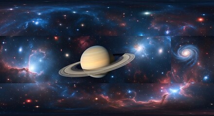 Saturns Rings in a Cosmic Nebula - A Celestial Wonder.