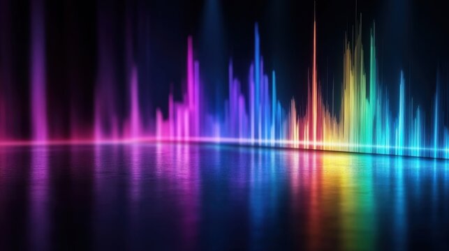 Abstract digital audio equalizer visualization with glowing bars and reflections