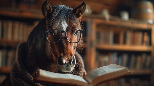 Grazing horse amid line chart of growth with tranquil pastoral setting
