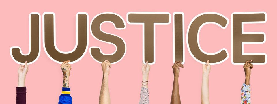 Brown letters forming the word justice