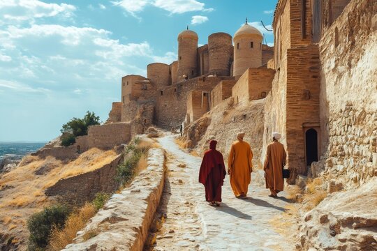 Locals walking towards ancient citadel of Erbil in Iraqi Kurdistan