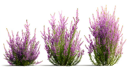 Set of Calluna vulgaris (common heather, ling, or simply heather) frontal isolated on a white background perfectly cutout high resolution Stock Illustration