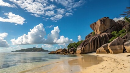 A beachside rock formation eroded by waves in Seychelles, beach rocks, Indian Ocean, , ocean wave