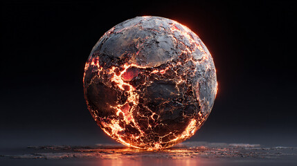 Fiery planet with lava rivers and erupting volcanoes, fantasy, fire, danger