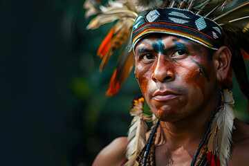 Homem Indigena da Amazonia Com Pinturas Corporais e Espaco para Copy.