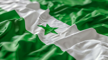 Close-up of the Esperanto flag with detailed fabric texture, symbolizing international communication.