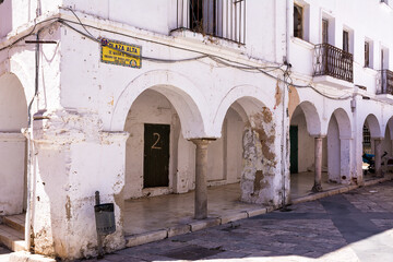 Facade of Mudejar houses in Plaza Alta in Badajoz (Spain)
