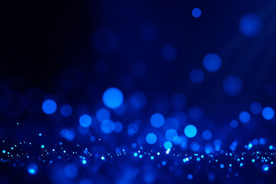 Enchanted Sapphire Glow: A Luminous Abstract Background with Sparkling Bokeh and Cascading Light Orbs