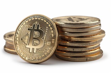 A neat stack of golden Bitcoins symbolizing cryptocurrency investment and finance technology