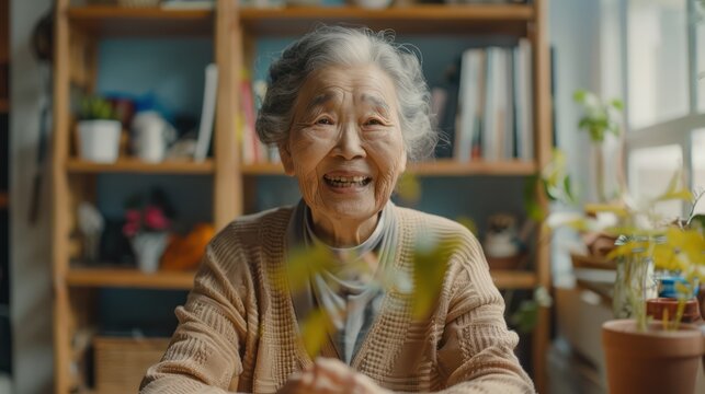 Elderly Woman at Traditional Flower Market with Warm Smile