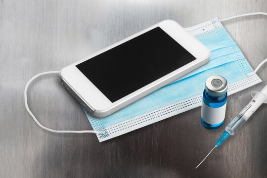 Covid 19 digital immunization record, smartphone and coronavirus complete vaccination