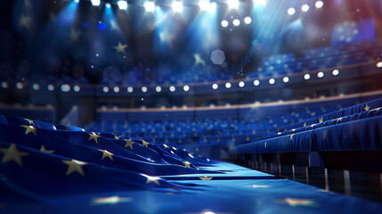 Digitized eu ukraine flag overlay with politics and crisis imagery