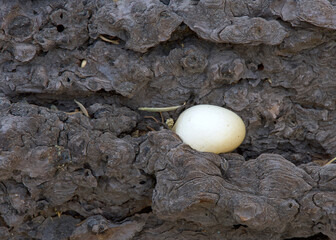 Close up on wild mushroom growing in fallen pine tree trunk. Neolentinus ponderosus, commonly known as the giant sawgill, or ponderous lentinus. Aradus, or flatbug, camouflaged below the mushroom