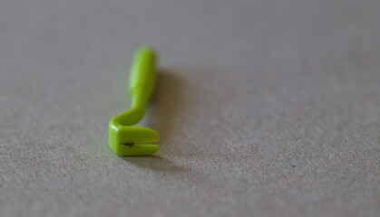 Closeup imprint of bark beetle under piece of wood. Tree was eaten by bark beetle larvae, Bark beetle tunnels revealed beneath the bark of a tree. Beetles Scolytinae, larval galleries in wood