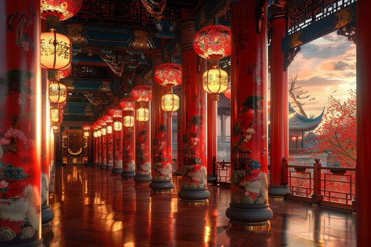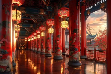 Ancient Chinese Architecture: Palace Corridor with Exquisite Details