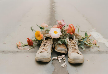 Flowers growing on old shoes It shows you that some things, even though they're old, still have meaning.