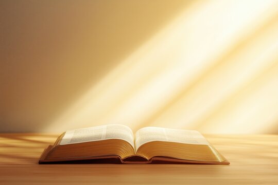 Bright sun light and bible book silhouette of the Holy Jesus Christ guiding the bright path
