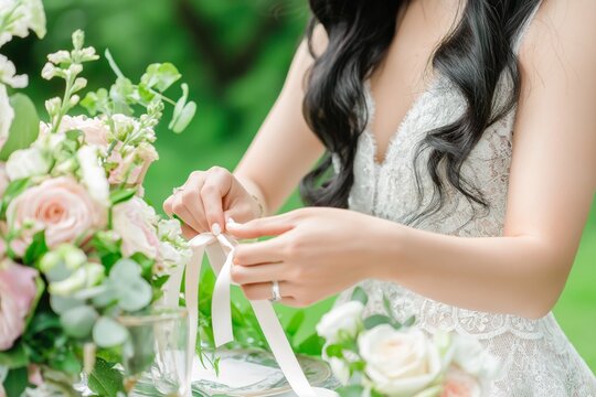 Creating a beautiful vintage-themed wedding table with floral arrangements and antique decor in a lush outdoor garden setting