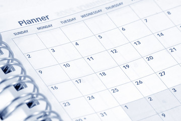 close up of calendar on the table, planning for business meeting or travel planning concept
