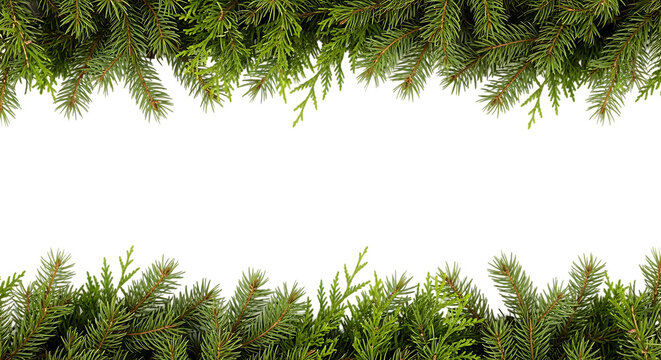 Collection of coniferous twigs on a transparent background