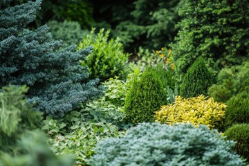 Lush evergreen plants in a garden landscape
