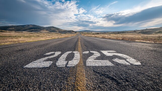 A futuristic representation of the year 2025, depicted in bright blue digital numbers against a sleek, technology-inspired background.